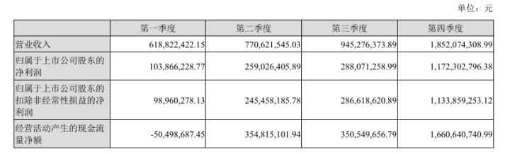 其中,公司去年第四季度营收18.52亿元,环比增长95.98%,几乎翻倍,同比增长55.37%;净利11.72亿元,环比暴增3倍多,同比增长85.44%。公司去年第四季度业绩大增,与去年9月下旬以来A股市场行情大幅回暖有关。